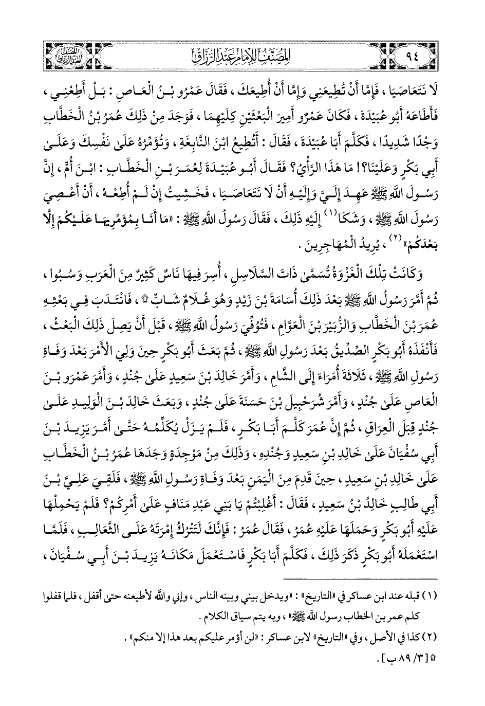 فَتُوُفِّيَ رَسُولُ اللهِ صَلَّى اللهُ عَلَيْهِ وَسَلَّمَ قَبْلَ أَنْ يَصِلَ ذَلِكَ الْبَعْثُ، فَأَنْفَذَهُ أَبو بَكْرٍ الصِّدِّيقُ بَعْدَ رَسُولِ اللهِ صَلَّى اللهُ عَلَيْهِ وَسَلَّمَ.