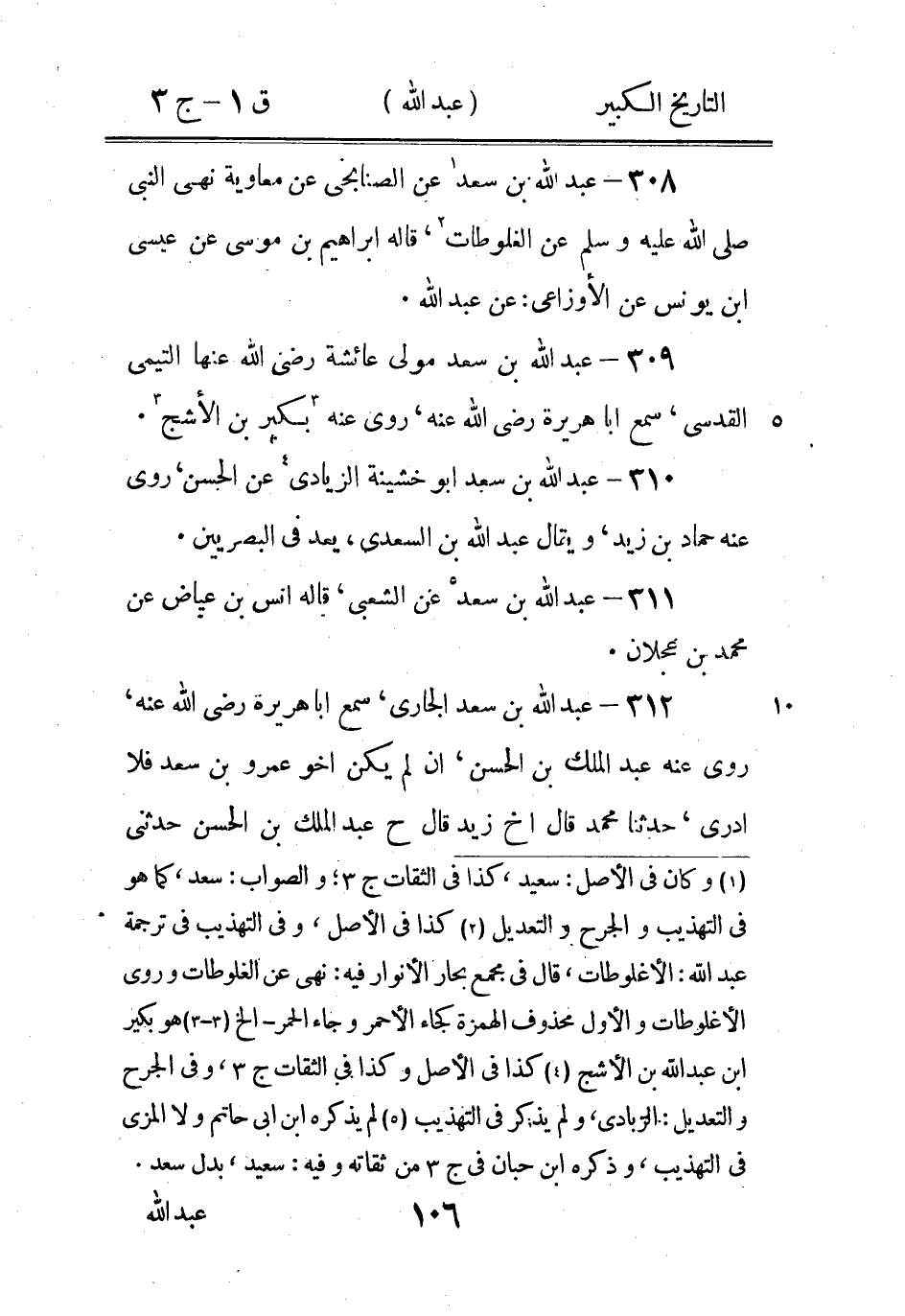 3 - 3) كذا في الاصل، وفى الجرح والتعديل: القشيرى (مكان الرقاشى) أبو عبد الرحمن روى عن ابن بريدة روى عنه عبد الوارث وعبد الوهاب الثقفى، قلت فلعله سقط هنا رجل بين قال وبين أبو عبد الرحمن لان هذا كنية ابن السكن (4) أي الهمداني (5) زاد ابن ابى حاتم: الوحاظى (6) محمد بن الوليد الزبيدى (7) أي التنيسى.
