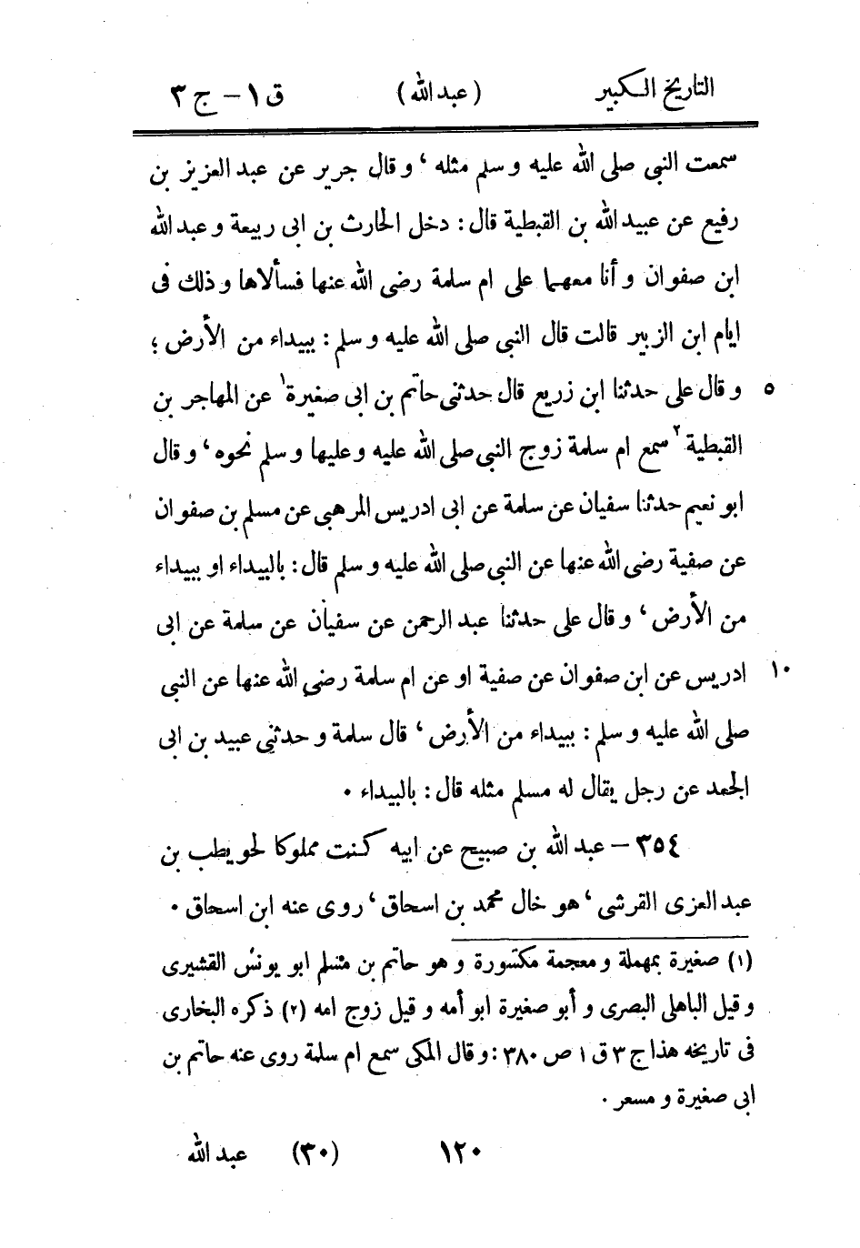 (1) وقال أبو حاتم: ويقال عبيد الله وعبد الله اصح (2) ذكره المؤلف في تاريخه هذا ج 4 ق 1 ص 265 وذكر اخاه معاذا في ص 362 (3) وفى الجرح