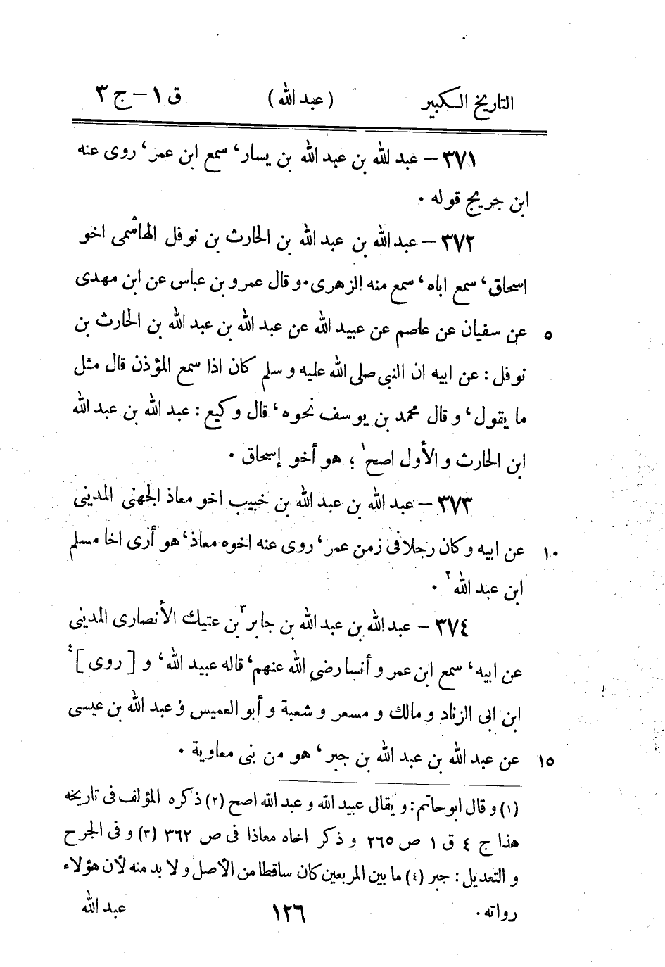 (1) أي عبد الله اخو سعيد بن عبد الرحمن (2) بضم الذال المعجمة وباء موحدة، من التقريب (3) كذا ويأتى عبد الله بن عبد الرحمن بعد (4) هو مروان بن معاوية ابن الحارث بْن أسماء بْن خارجة أَبُو عَبْد الله الفزارى، من التاريخ الكبير ج 4 ص 372 (5) هو الحسن بن عمر أبو المليح الرقى الفزارى، روى عن ميمون ابن مهران والزُّهْرِيّ، روى عَنْهُ ابْن المبارك وعمرو بن خالد، من التاريخ الكبير ج 1 ق 2 ص 297.