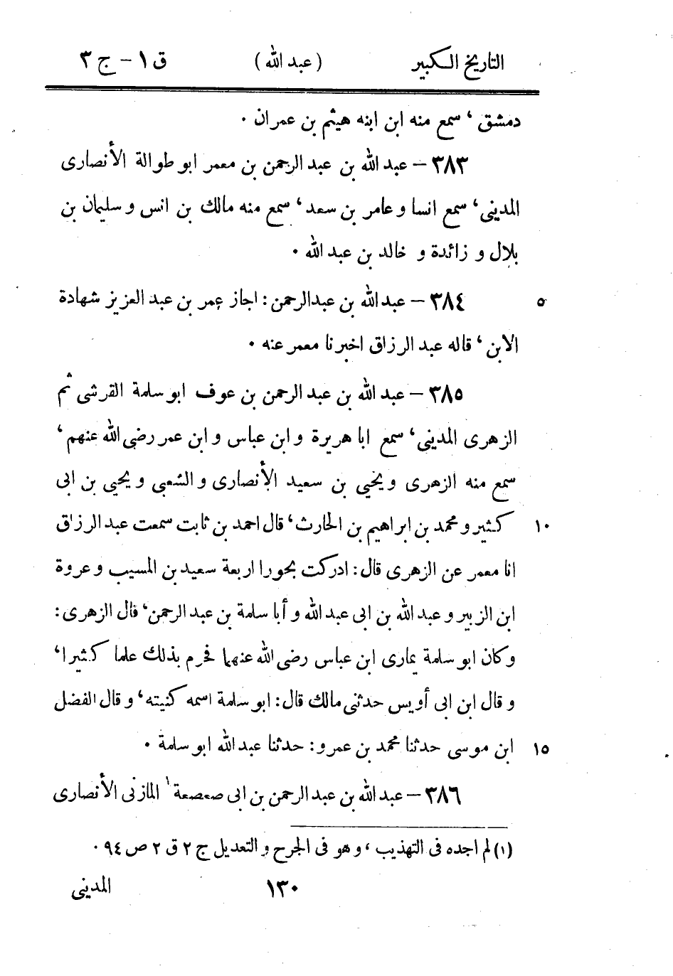 407 - عَبْد اللَّه بْن عَبْد الرَّحْمَن بْن عَبْد اللَّهِ بْنِ عُمَر الْقُرَشِيّ العدوي عَنْ سالم بْن عَبْد اللَّه، قَالَه المقرئ عَنْ حيوة عَنْ أَبِي صخر (1) ، قَالَ ابْن وهب