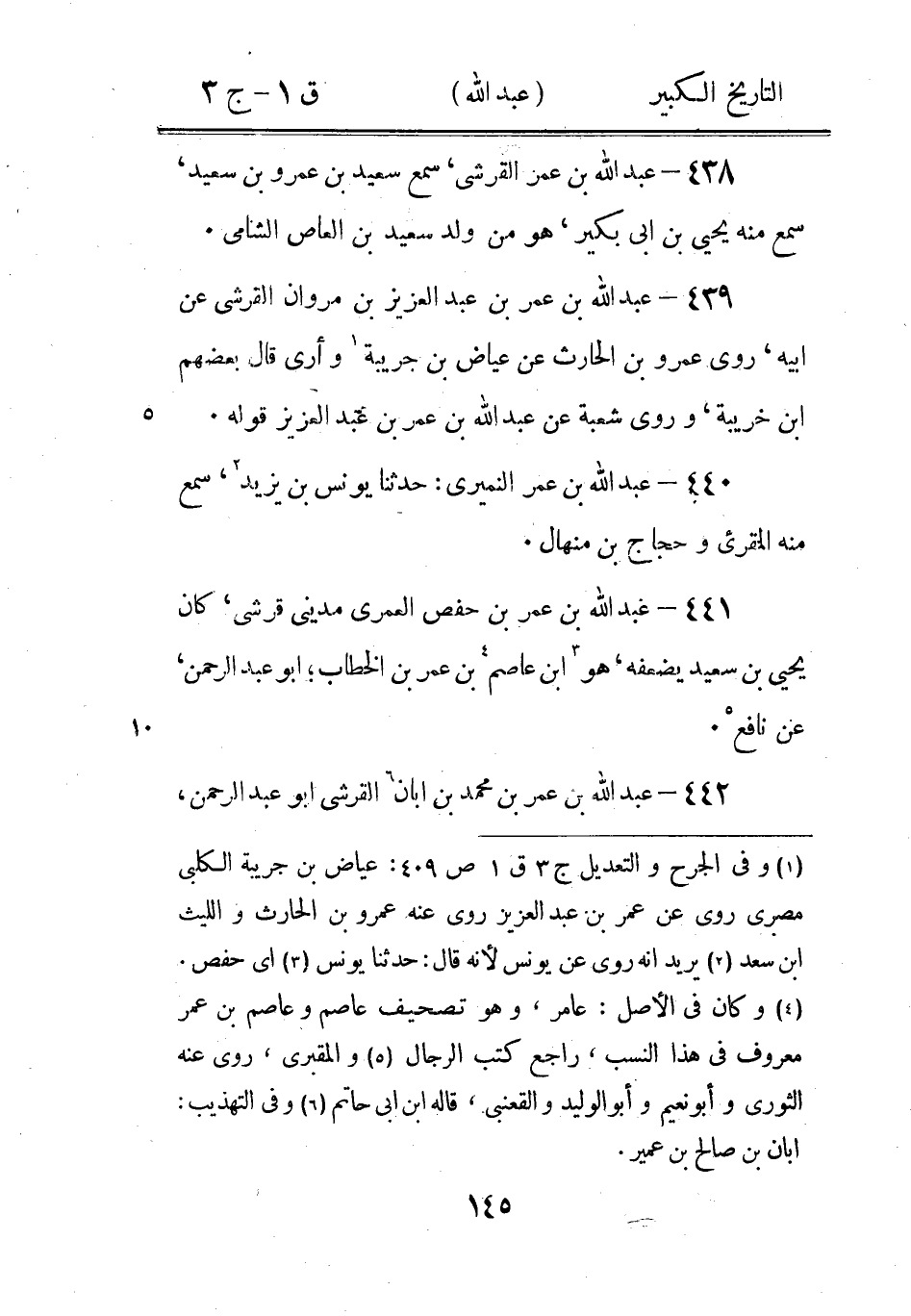 (1) وكان في الاصل: عياش، بالياء التحتانية المثناة والشين المهملة، والصواب: العباس، بالموحدة والسين المهملة، راجع التقريب (2) قال في التقريب: بكسر القاف وسكون التاء (3) زاد ابن ابى حاتم: الاعرج، وزاد في رواته: ابن وهب وإدريس بن يحيى الخولانى وأبا صالح الحرانى (4) وكان في الاصل: عمر، والصواب: عمرو، راجع التهذيب والجرح والتعديل (