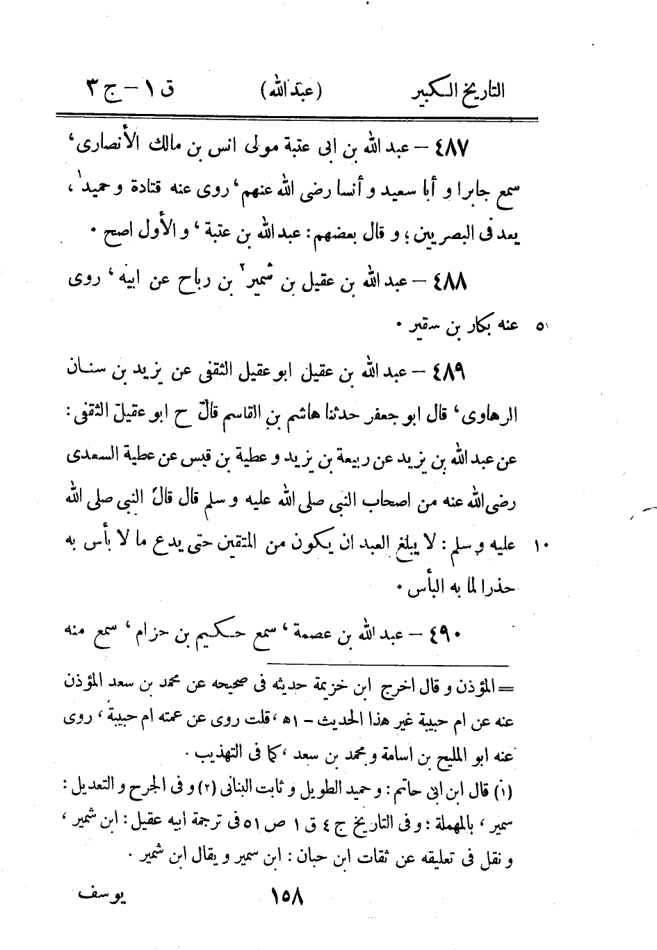 حاتم بأنه الاول لانه قال: عبد الله بن عيسى بن بحير الجندي، ومر ما ذكره المصنف في ترجمه محمد بن ابى محمد.
