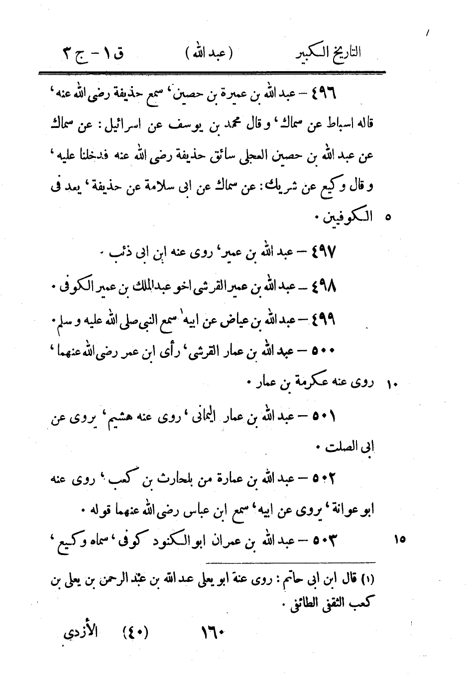 (1) أي أبو عامر (2) وفى الجرح والتعديل: الشيباني، مكان السدوسى، وفى التهذيب: عبد الله بن غرادة بن شيبان السدوسى أبو شيبان، فعلم ان ما هنا صواب وما في الجرح تصحيف - والله اعلم (3) وكان في الاصل: الحرانى، تصحيف، والصواب: الحدانى، بضم الحاء وتشديد الدال، راجع التقريب.