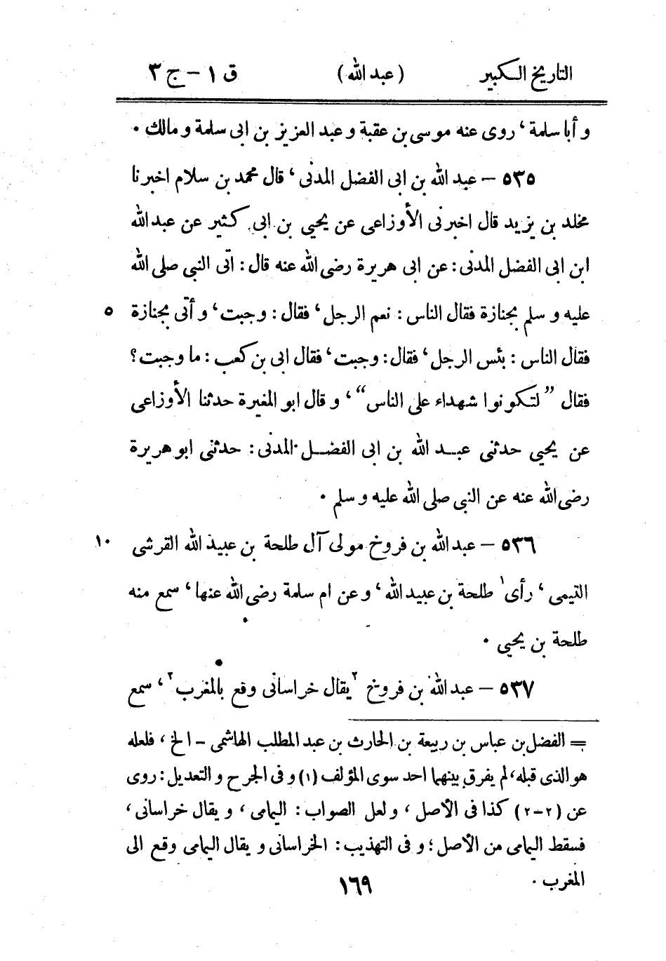 555 - عَبْدُ اللَّهِ بْنُ أَبِي قَتَادَةَ (2) ، وَاسْمُ أَبِي قَتَادَةَ الْحَارِثُ بْنُ رِبْعِيٍّ، الْأَنْصَارِيُّ السُّلَمِيُّ الْمَدِينِيُّ، قَالَ قَيْسُ بْنُ حَفْصٍ حَدَّثَنَا عَبْدُ الْوَاحِدِ سَمِعَ حَجَّاجُ بْنُ أَرْطَاةَ عَنْ قَتَادَةَ بْنِ عَبْدِ اللَّهِ بْنِ أَبِي قَتَادَةَ قَالَ: كَانَ أَبُو قَتَادَةَ يُصْغِي إِنَاءَهُ لِلَهِرِّ ثُمَّ يَتَوَضَّأُ مِنْهُ وَقَالَ: رَأَيْتُ النَّبِيَّ صَلَّى اللَّهُ عَلَيْهِ وَسَلَّمَ يَصْنَعُ، وقَالَ اسمعيل حَدَّثَنَا همام عَنْ يَحْيَى بْن أَبِي كثير عَنْ عَبْدِ اللَّهِ بْنِ أَبِي قتادة: أن اباه توضأ به، وقَالَ أَحْمَد بْن دَاوُد حَدَّثَنَا خَالِد بْن عَبْد اللَّه عَنْ عَبْدِ الرَّحْمَن بْنِ إِسْحَاق عَنْ مُحَمَّدِ بْن حذيفة عَنْ عَبْدِ اللَّهِ بْنِ أَبِي قتادة: رأى أبا قتادة توضأ به، وَقَالَ زُهَيْرُ بْنُ حَرْبٍ حَدَّثَنَا يَعْقُوبُ بْنُ إِبْرَاهِيمَ قَالَ حَدَّثَنَا أَبِي عَنِ ابْن إِسْحَاق سَمِعَ صالح بْن كيسان عَنْ عَبْد الملك بن حذيفة