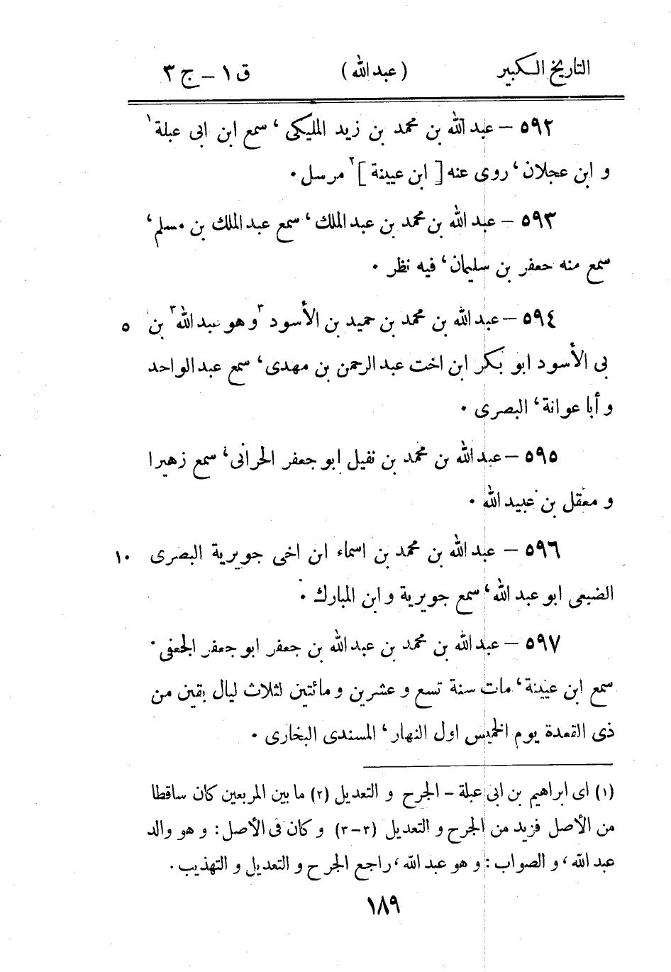 كما نقله في التهذيب عن تاريخ البخاري هذا (2) لعل " على بن المدينى " قبل قوله " قال جرير " سقط من الاصل لان الراوى عن جرير ابن المدينى، كما ذكره في الجرح والتعديل فظن الناسخ انه مكرر فأسقطه - والله اعلم.