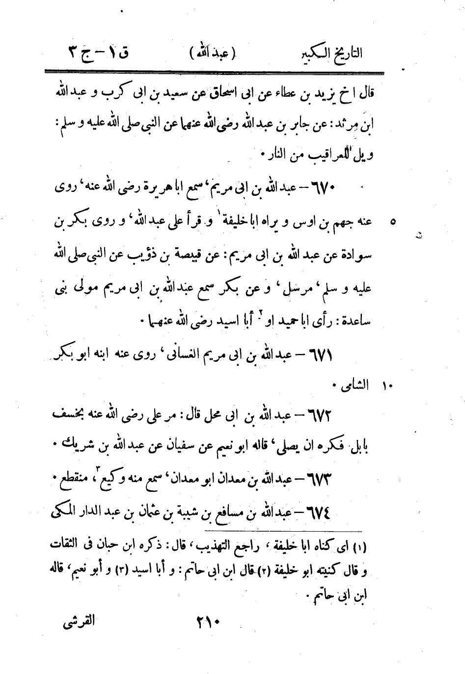 (2) وهو عند ابن ابى حاتم والمزى ليس بسحيمى بل السحيمى الذى يأتي بعده وهما واحد عندهما، فرق المصنف بينهما (3) قال ابن ابى حاتم: وعمر بن يونس لانه لم يفرق بينه وبين الذى قبله (4) والاعمش وإسمعيل بن ابى خالد، وعنه ولد ابى شيبة أي أبو بكر وعثمان وابنه محمد وأبو سعيد الاشج، قاله ابن ابى حاتم، قلت وهو من رجال التهذيب، روى له الستة (5) وعون بْن عَبْد اللَّه بْن عُتْبَةَ بْن مَسْعُود وابن ابى ذئب، قاله ابن ابى حاتم.