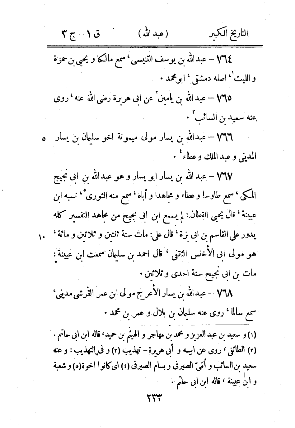 789 - عَبْد اللَّه صاحب الكرى كَانَ يكري الثياب، يعد في الْبَصْرِيّين، قَالَ مُوسَى (4) حَدَّثَنَا عَبْد اللَّه: سَمِعَ أبا ربيعة صاحب السابري عَنْ أنس بْن مالك قَوْله.