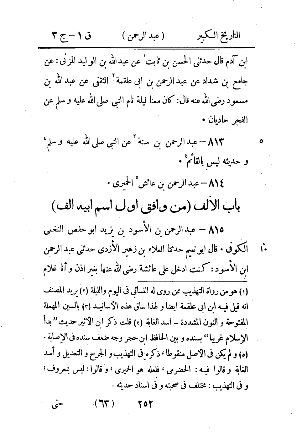 834 - عَبْد الرَّحْمَن بْن إِسْحَاق بْن الحارث الْقُرَشِيّ الْمَدَنِيّ عَنِ الزُّهْرِيّ وأَبِيه وأَبِي عُبَيْدة بْن مُحَمَّد، سَمِعَ منه ابْن علية وبشر بْن المفضل ويزيد بْن زريع، وقَالَ عَبْد اللَّه بْن رجاء: أهل المغرب يَقُولُون: عباد ابن إِسْحَاق، ربما وهم، قَالَ خَالِد عَنْ عَبْد الرحمن عن الزهري: عن سالم