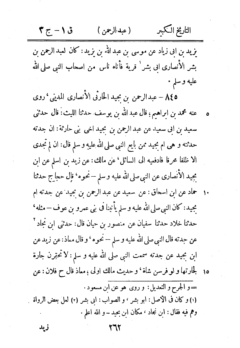 (2) وكان في الاصل: حريش، بالشين المعجمة، والصواب: جريس، تصغير جرس، ذكره ابن حبان في ج 3 من ثقاته وقال: كوفى يروى عن حماد بن ابى سليمان عن ابى وائل عن عبد الله في التشهد، وكذا ذكره ابن ابى حاتم ايضا وقال: روى عنه ابن ابى زائدة - الخ (3) وكان في الاصل: الدارى، خطأ، والصواب: الفراء، كما في التهذيب، أبو جعفر الفراء مذكور في كنى التهذيب قال: روى عن عبد الرحمن بن جدعان (4) قال المصنف في هذا التاريخ ج 2 ق 2 ص 186: سوادة البرجى روى عنه صفوان بن عمرو (5) وفى الجرح والتعديل: ج 2 ق 2 ص 41: عبد الله بن الحجاج روى عن عبد الرحمن = (*)