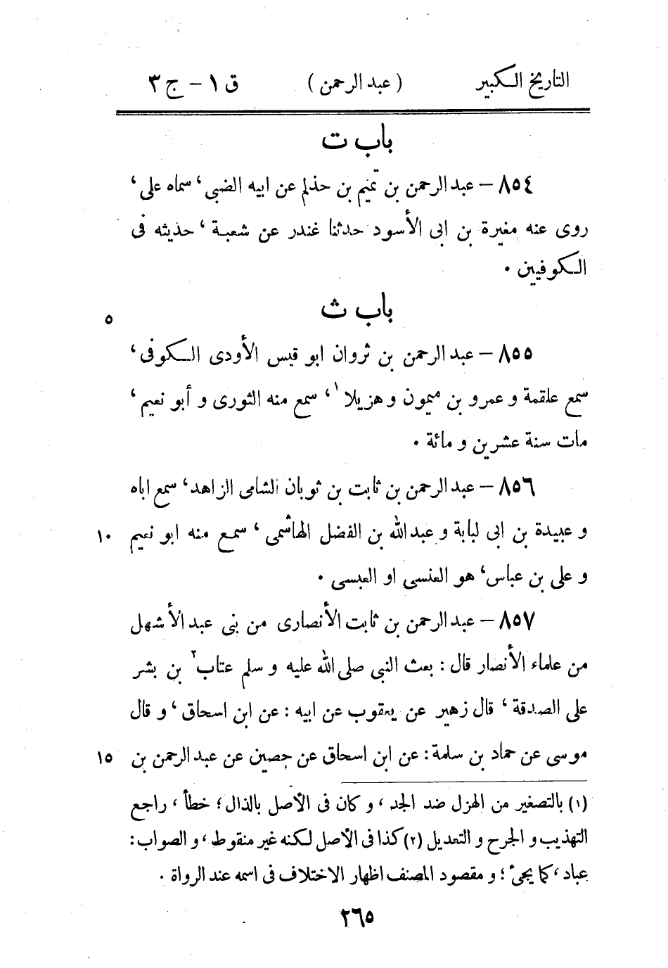 877 - عَبْد الرَّحْمَن بْن حباب السلمي عَنْ أَبِي قتادة، روى عَنْهُ بكير بْن الأشج (3) ، هو الانصاري، حديثه في أهل المدينة.