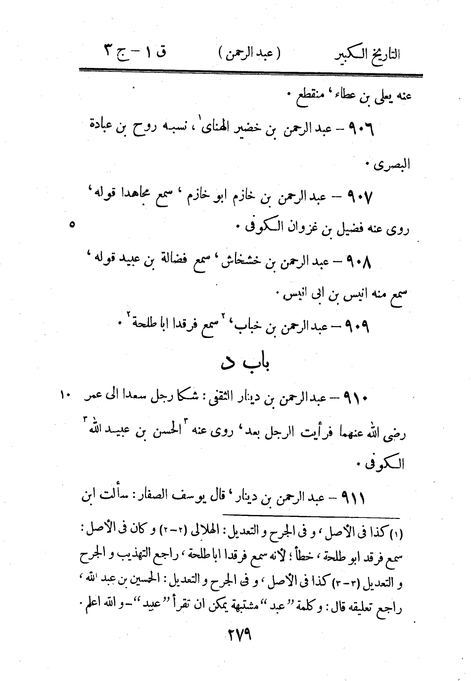 ادرك النبي صلى الله عليه وسلم، وعبد الرحمن في عداد التابعين - الخ (4) شيبة ابن عثمان بن ابى طلحة عبد الله بن عبد العزى بن عثمان بن عبد الدار أبو عثمان الحجبى العبدرى المكى، كذا في التهذيب، قلت وكان في الاصل: سنة، خطأ (5) ابن هرمز، كذا في اسد الغابة.