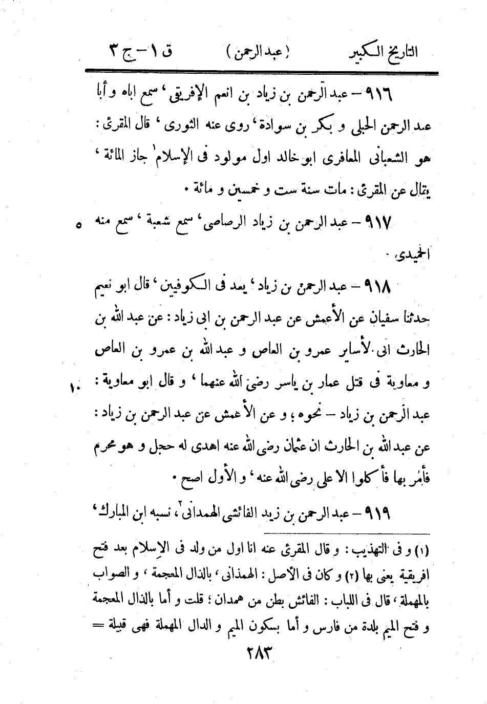 (1) وكان في الاصل: روى، خطأ، والصواب: رأى، كما هو في التهذيب قال: رأى انس بن مالك وسهل بن سعد (2) وفى التهذيب روى عن عاصم ابن عمر وحمزة ومالك بن حمزة بن ابى اسيد وغيرهم، فلعل لفظ " روى " هنا سقط قبل " عاصم " - والله اعلم (3) أي عبد الله بن ادريس (4) بالعين والنون بعدها سين مهملة، كما هو في التقريب (*)