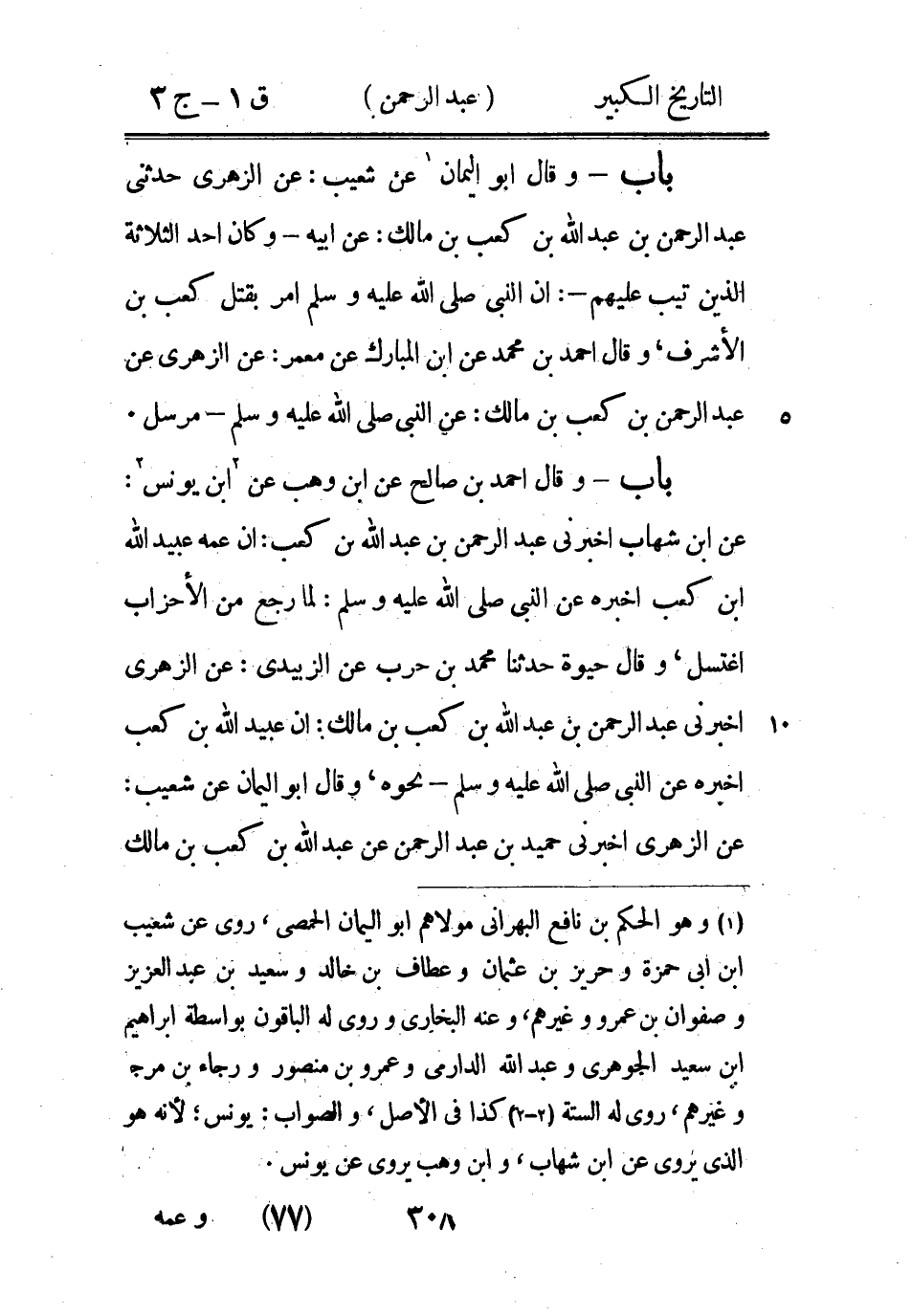 (1) كذا في الاصل: وإنما كان قائد كعب من بنيه عبد الله، وعبد الرحمن حفيده فهو من اوهام بعض الرواة، لعله اورده المصنف لاظهار الوهم (2) كذا في الاصل غير منقوط وأظنه ابا ضمرة لانه يروى عنه (3) وكان في الاصل: العرفي، بلا نقط مصحف، والصواب: العرجى، والعرج موضع بمكة.