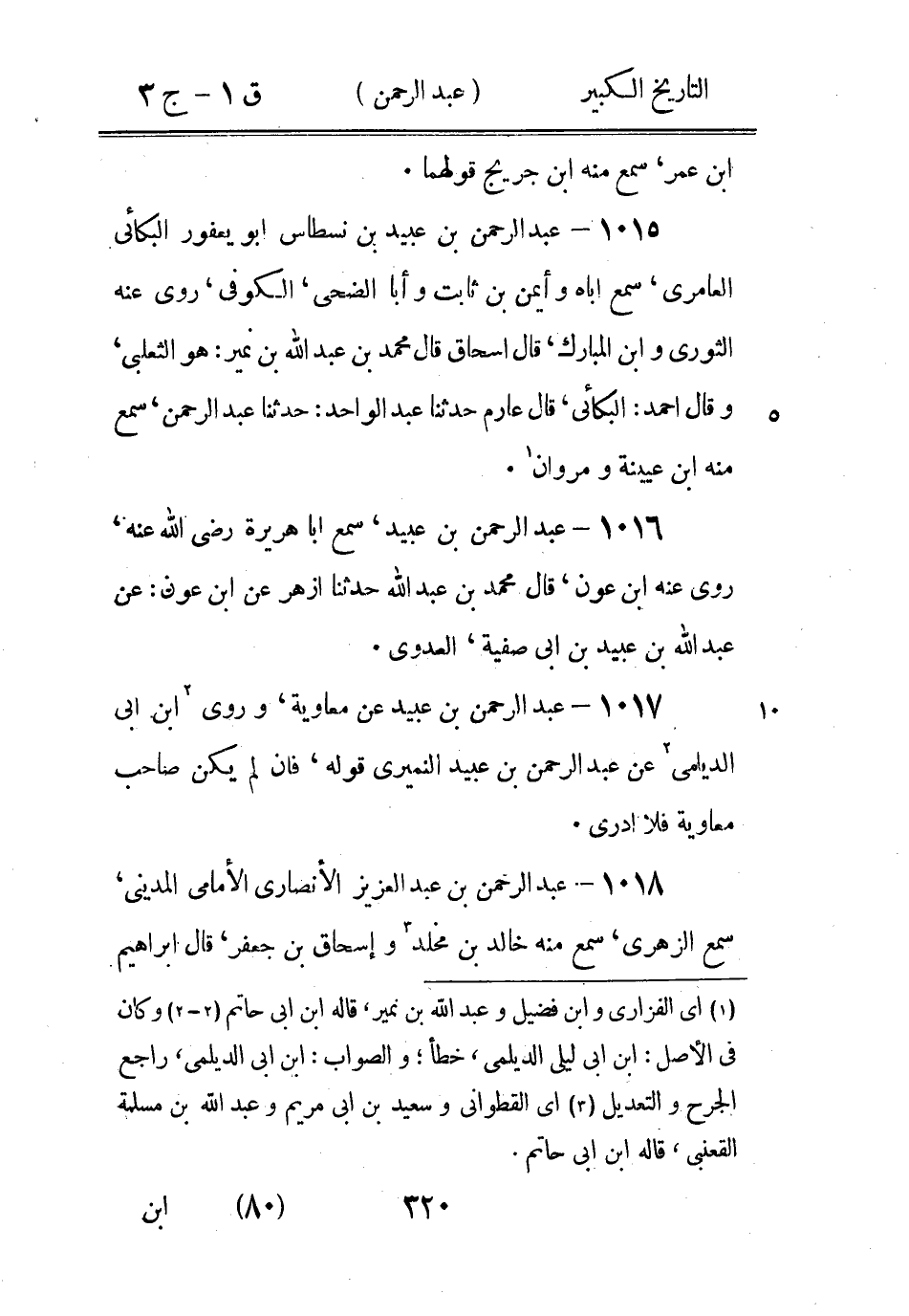 1 - 1) وفى الجرح والتعديل: كنت محتلما خلافة عمر - الخ (2) وكان في الاصل: الشيباني، والصواب بالسين المهملة، راجع التقريب والتهذيب.