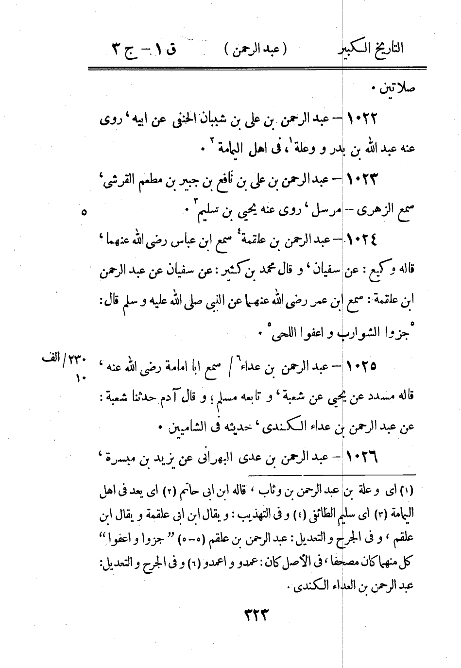 1046 - عَبْد الرَّحْمَن بْن عُمَر بْن عَبْد الرَّحْمَن بْن يزيد القاص من أبْناء فارس باليمن عَنْ أَبِيه عَنْ جده، روى عَنْهُ هشام بْن يوسف.