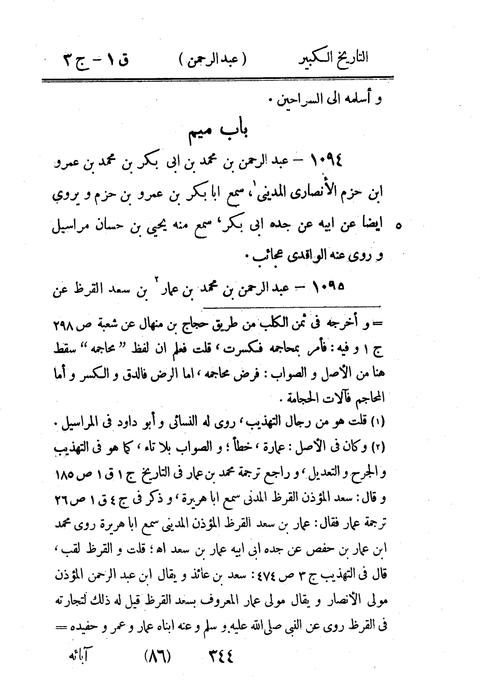 (1) وكان في الاصل: حديم، والصواب: حديج، راجع كتب الرجال فهو معروف عندهم (2) وكان في الاصل: عبد الله، خطأ، والصواب: عبد الرحمن، يدل عليه بابه (