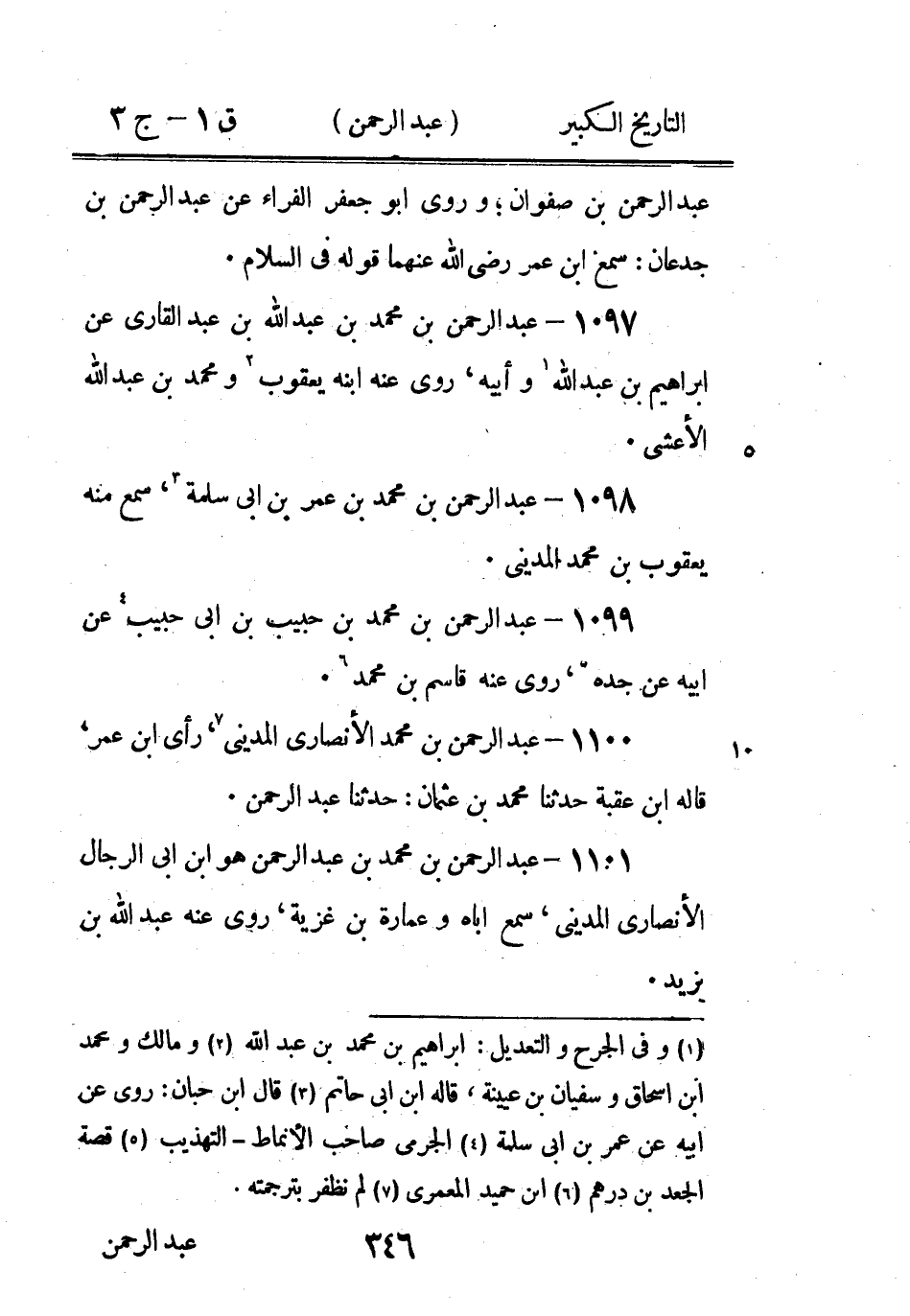 1116 - عَبْد الرَّحْمَن بْن مهران مولى بَنِي هاشم عن عبد الرحمن ابن سعد عن ابى هريرة رضى الله عَنْهُ: الأبعد من المسجد أعظم أجرا، نسبه اسمعيل عَنْ أخيه عَنِ ابْن أَبِي ذئب، المديني.