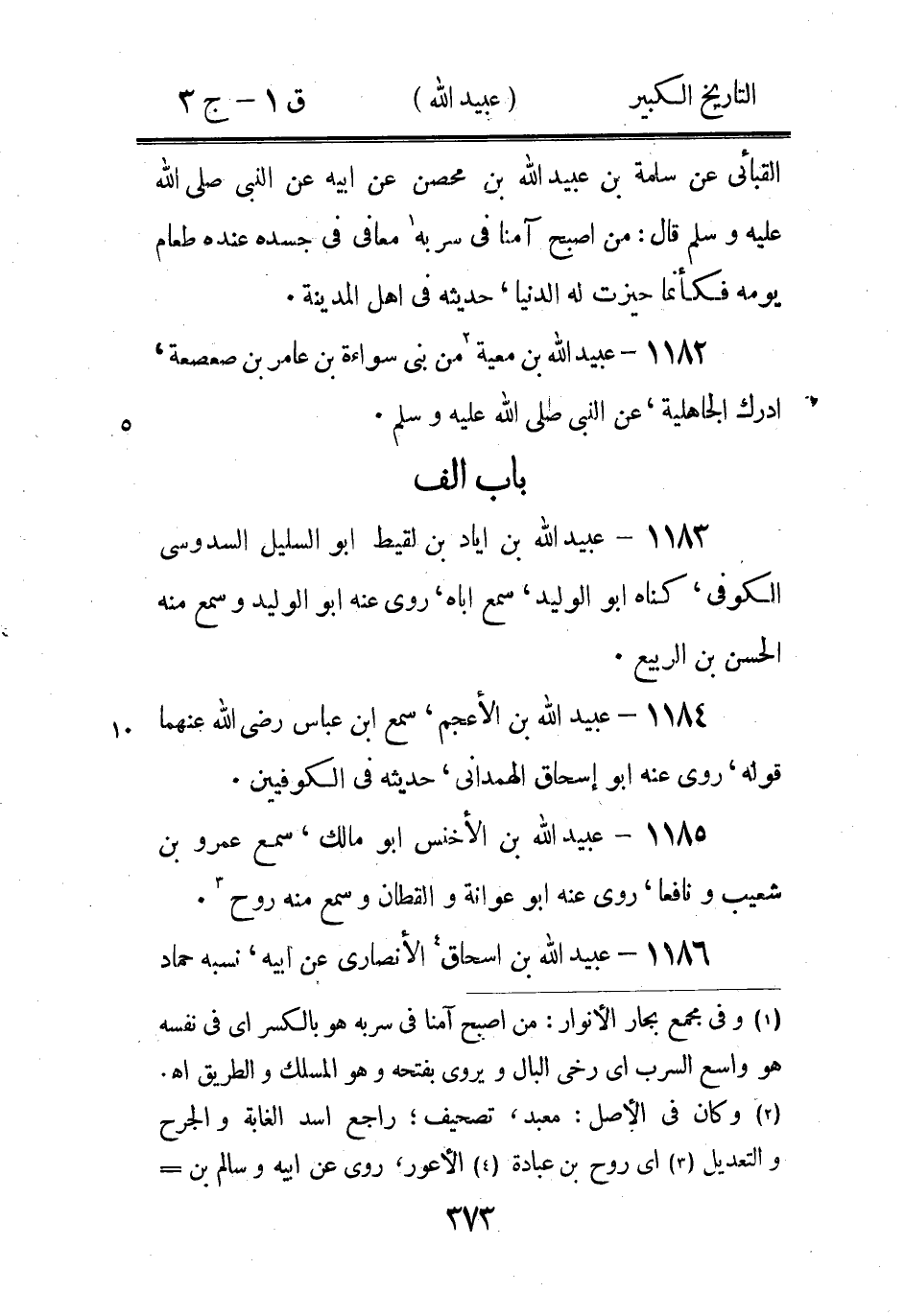 (1) أي ابن عمر راجع الثقات ج 2 (2) ما بين المربعين كان ساقطا من الاصل ولابد منه وهو موجود في لسان الميزان ناقلا عن البخاري (3) كذا في الاصل، وفى لسان الميزان: عبيد الله، مصغرا وكذا في الثقات ج 2 (4) وفى لسان الميزان: لعبد العزيز - والله اعلم (