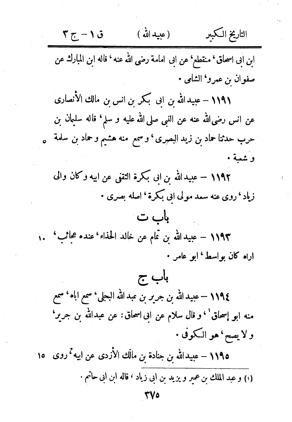 (1) أي اسمعيل بن ابى خالد (2) والواو كان ساقطا من الاصل، وكانت ترجمة ابن رواحة في الاصل مكررة وهو من سهو الناسخ الا ان في الاولى زيادة معاذ في رواته وفى الثانية ابان بن خليفة وخليفة تحريف خالد، ومعاذ هذا اظنه ابا المثنى التميمي البصري (3) وكان في الاصل: بشر، بالمعجم، والصواب: بسر، بالمهملة، راجع التهذيب (4) كذا في الاصل، ولعل الصواب: كان، = (*)
