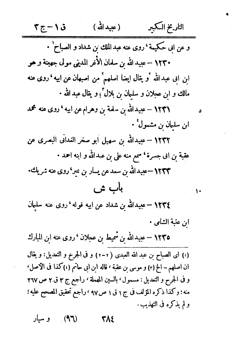 (1) روى عنه اسمعيل بن عياش، قاله ابن ابى حاتم (2) كذا هو في الاصل، والظاهر ان اسم راوي عبيد الله هنا سقط من الاصل، وفى الثقات ج 3: عبيد الله بن ابى عبد الله الاغر واسم ابيه سليمان يروى عن ابيه روى عنه مالك وسليمان بن بلال، فلعله هو - والله اعلم (3) وفى الثقات ج 3: يروى عن الحجازيين روى عنه ابن اسحاق، وفى الجرح والتعديل: عمير، مكان معمر - والله اعلم (4) وكان في الاصل: عبد الرحمن، والصواب: عبيد الرحمن، = (*)