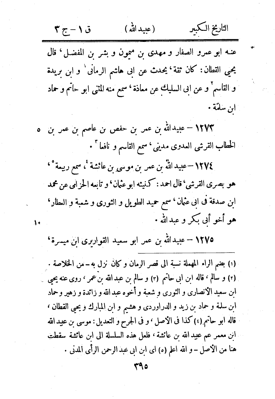 (1) ومعتمر بن سليمان، راجع التهذيب (2) واسم ابى نهيك القاسم بن محمد، قاله ابن ابى حاتم (3) بكسر العين المهملة وسكون السين المهملة التميمي اليربوعي أبو قرة البصري، راجع التهذيب والتقريب (4) أي النبيل، راجع الجرح والتعديل.