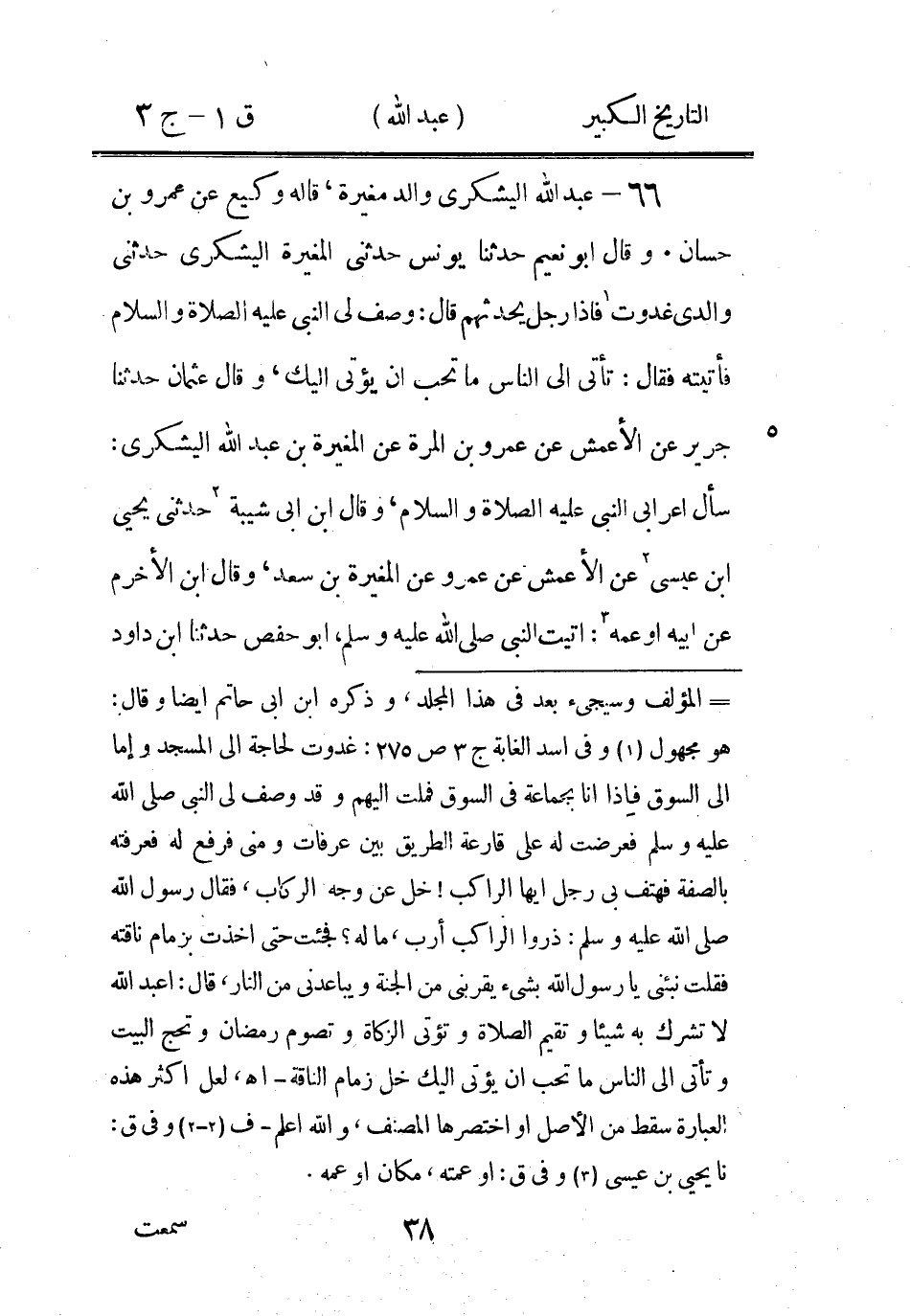 2 - 2) عن جدى أي عبد الله، عن ابيه أي ابى اسحاق واسمه زيد بن الحارث، عن جده أي الحارث - ف (3) وكان في الاصل: السدوسى، خطأ، والصواب ما في ق والجرح والتعديل: السدى (4) هو اسمعيل بن أَبِي خَالِد، روى عَنْهُ عَبْد اللَّه بْن اسمعيل - ف (5) هو محمد بن كريب - ف.