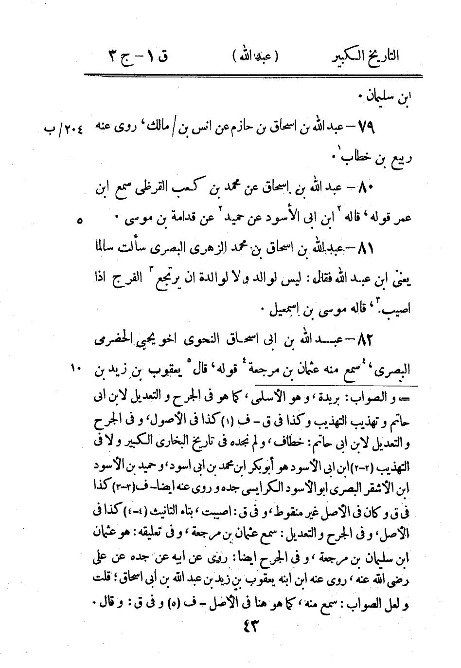 (1) وبهامش الاصل نسخة: بشير، وكذا في التاريخ ج 1 ق 2 ص 51 في ترجمة الاحنف، وفى الجرح والتعديل ج 2 ق 2 ص 13: عبد الله بن بشر، كما هنا، قلت وفى ق في هذا الحرف: بشير (