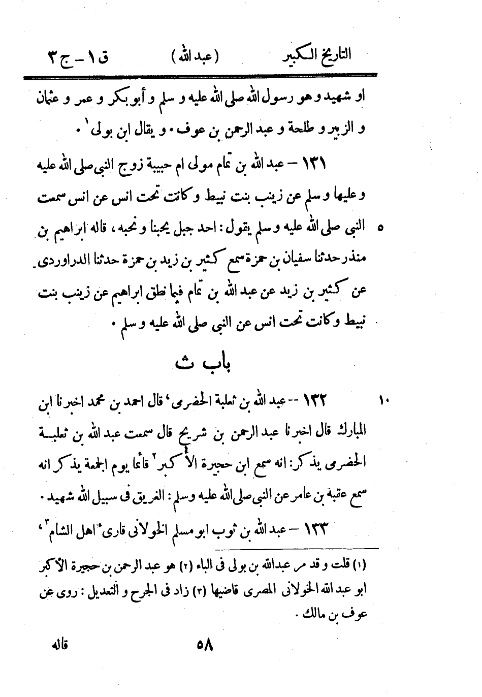 (1) لم يذكر عبد الله بن عمرو في التهذيب ولا في الجرح والتعديل (2) كذا في الاصل، وكان مشكلا بالتشديد ويشتبه الزاى بالنون، وفى هذا الاسم اختلاف كثير، راجع تاريخ البخاري ج 1 ق 2 ص 313 ترجمة حبيب بن حمان الاسدي وتعليقه، وكان في الاصل بالجيم والصواب الحاء، كما هو في التاريخ لانه ذكره في باب الحاء (3) كذا في الاصل وبعد فاطمة علامة السقوط ولكن لم يجد على هامش المصورة شيئا من كلمات السقوط، وفى الجرح والتعديل: وليس هو الهاشمي، فكيف تصح هذه الجملة لانه كان مولى بنى قيس بن ثعلبة، فلعل العبارة الساقطة تبين الابهام - والله اعلم (4) وفى الجرح والتعديل: زوج اخته وهو والد يوسف بن عبد الله بن الحارث.