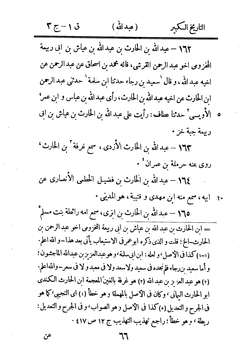 (1) وشريك بن عبد الله بن ابى نمر وصفوان بن سليم - تهذيب (2) هو محمد ابن فليح (3) وفى الجرح والتعديل: عبد الله ابى حسين، ولم يذكر في التهذيب، وكان في الاصل: حسين (4) روى عن الحارث بن جميلة عن ام الدرداء، وروى عنه عبد الملك بن عمير وجعفر بن سليمان الضبعى، قال أبو محمد روى أبو جناب الكلبى عن عبد العزيز بن رفيع عن عبد الله بن ابى الحسين: سمعت عمر بن الخطاب رضى الله عنه - الجرح والتعديل (5) الازدي قاضى سجستان - الجرح والتعديل (6) القارئ.