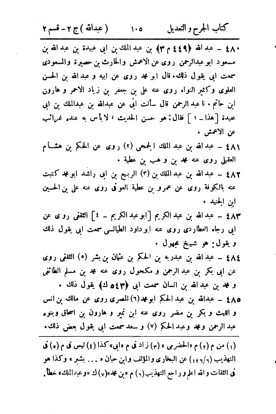 480- عَبد الله بن عَبد الملك بن أَبي عبيدة بن عَبد الله بن مسعود أَبو عَبد الرَّحمن.