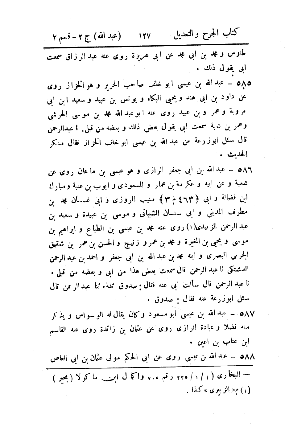 586- عَبد الله بن أَبي جعفر الرازي، وهو عيسَى بن ماهان.