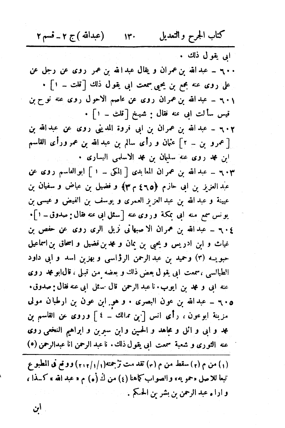 600- عَبد الله بن عِمران، ويُقال: عَبد الله بن عُمر.