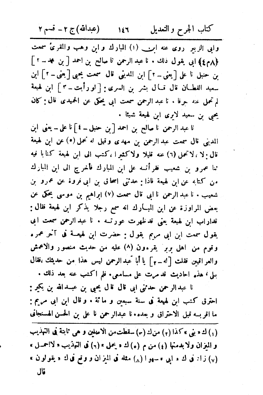 حَدَّثنا عَبد الرَّحمن، حَدَّثنا أَبي، قال: سَمِعتُ إِبراهيم بن موسى يحكي عن بعض المراوزة، عَن ابن المبارك؛ أَنه سمع رجلاً يذكر ابن لَهيعَة فقال: قد أَراب ابن لَهيعَة، يَعني قد ظهرت عورته.