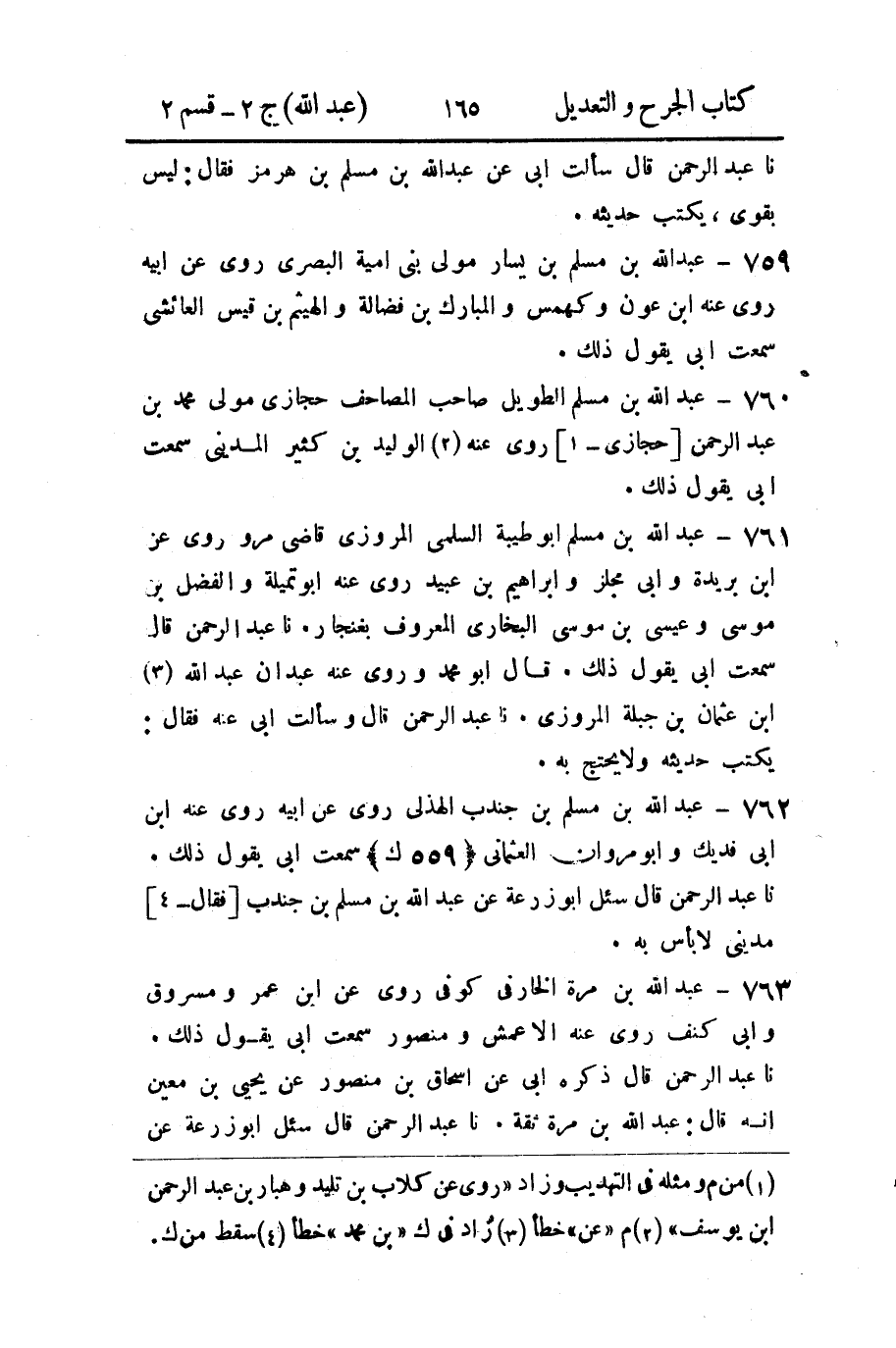760- عَبد الله بن مسلم الطويل، صاحب المصاحف، حِجَازي مولى محمد بن عَبد الرَّحمن حجازي.