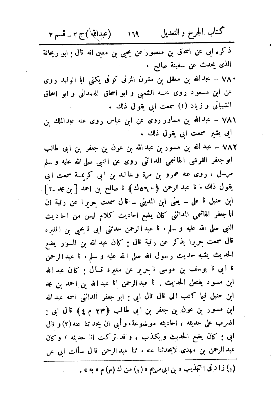 782- عَبد الله بن مسور بن عَبد الله بن عون بن جعفر بن أَبي طالب أَبو جعفر القُرَشي الهاشمي المدائني.