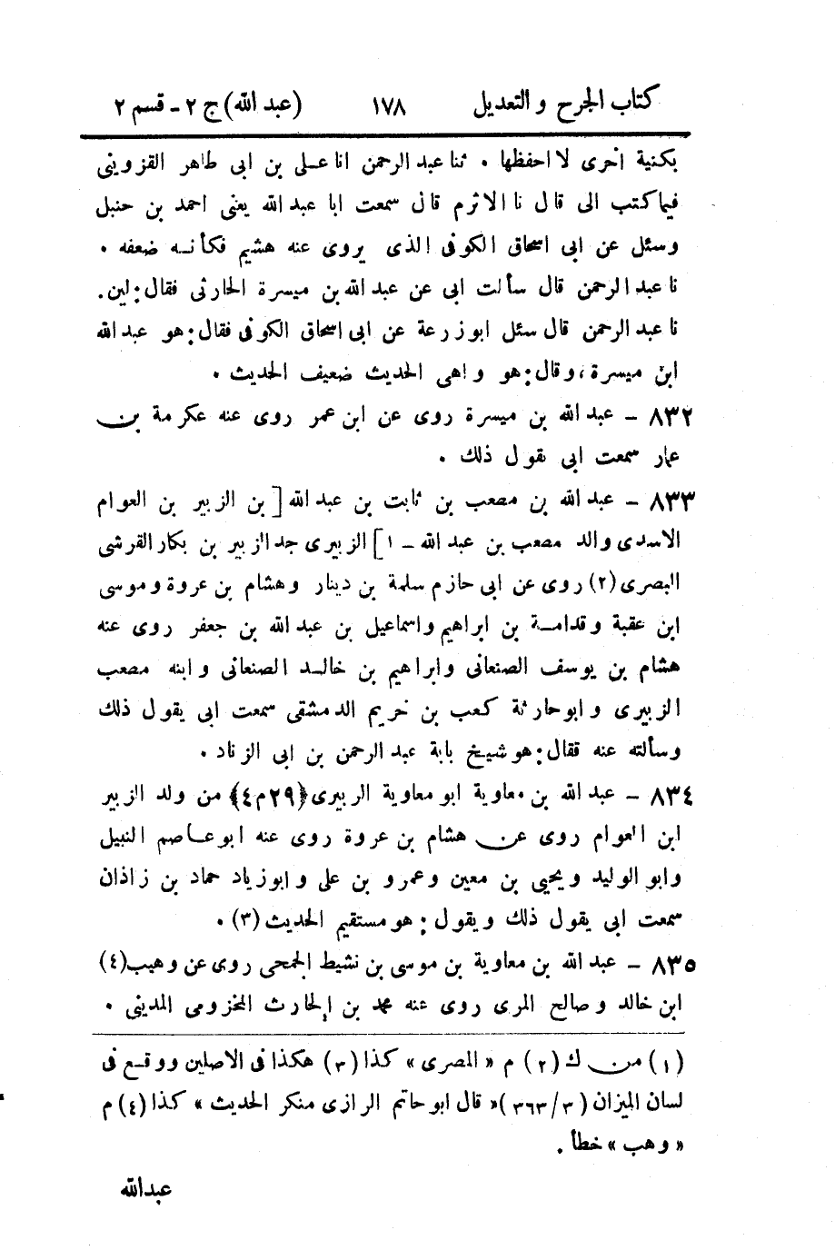 834- عَبد الله بن معاوية أَبو معاوية الزبيري من ولد الزبير بن العوام.