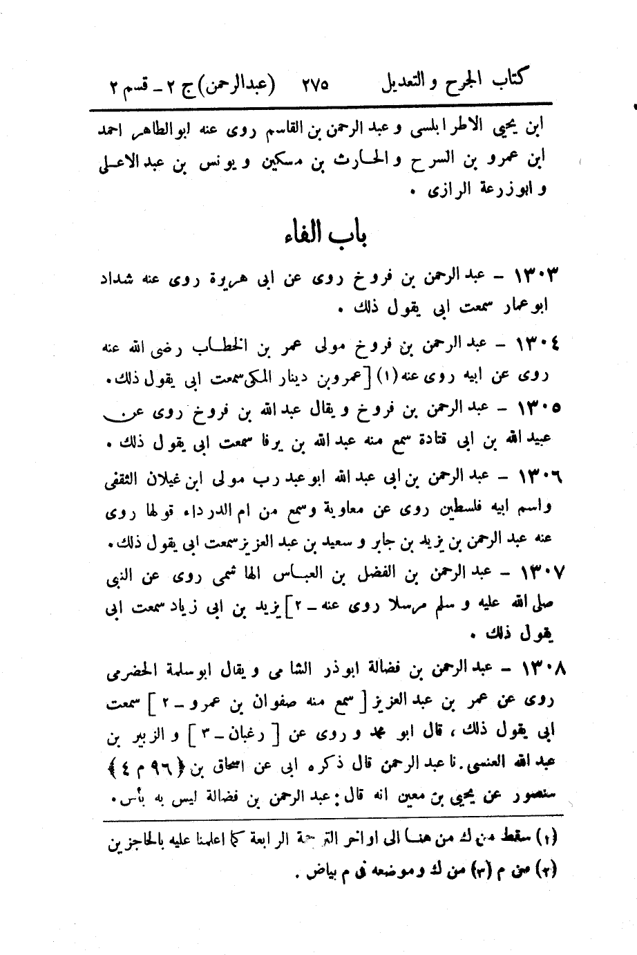 1304- عَبد الرَّحمن بن فروخ مولى عُمر بن الخطاب، رَضي الله عَنهُ.