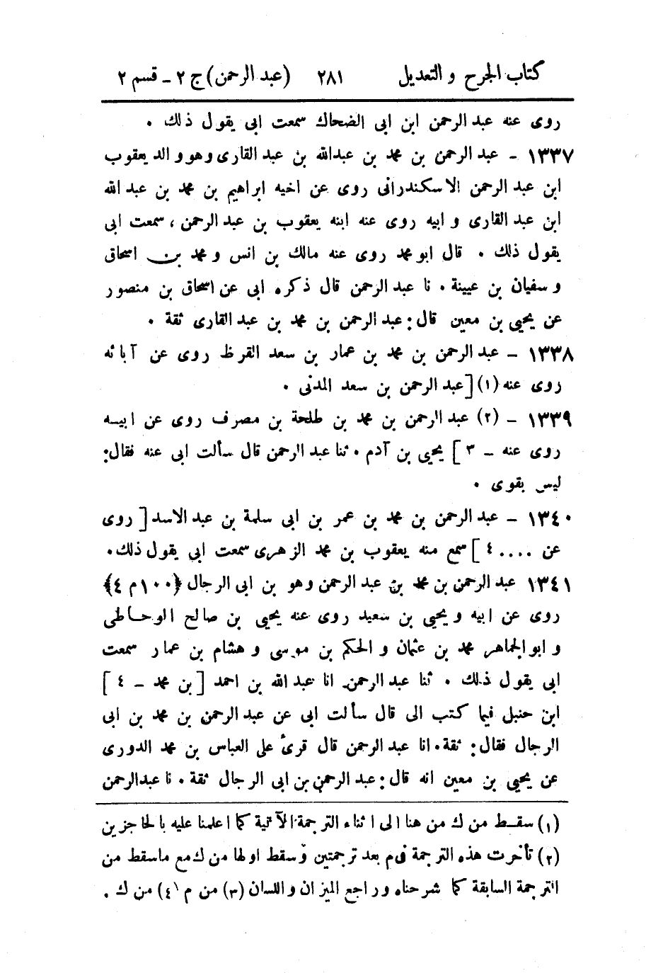 1341- عَبد الرَّحمن بن محمد بن عَبد الرَّحمن، وهو بن أَبي الرجال.