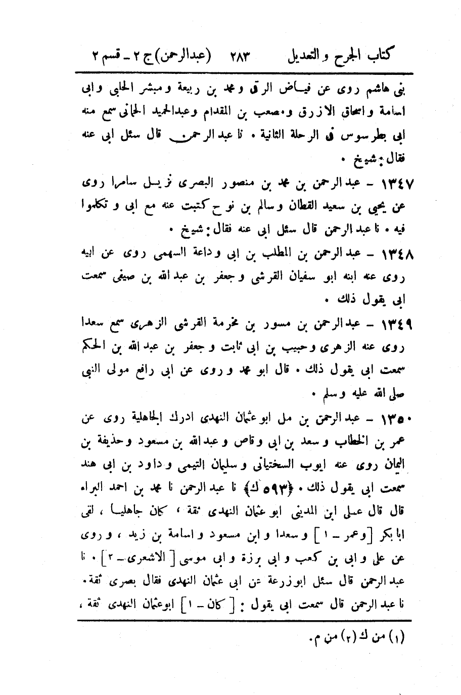 1350- عَبد الرَّحمن بن مل أَبو عثمان النهدي، أدرك الجاهلية.