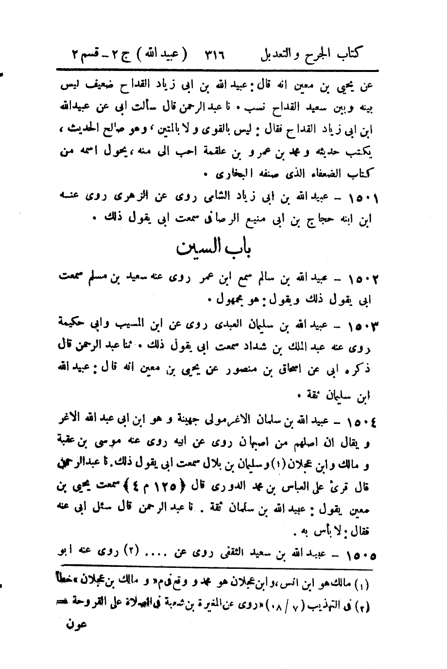 حَدَّثنا عَبد الرَّحمن، قال: قُرِئَ عَلَى العباس بن محمد الدُّوري، قال: سمعتُ يَحيَى بن مَعين يقول: عُبَيد الله بن سلمان ثقة.