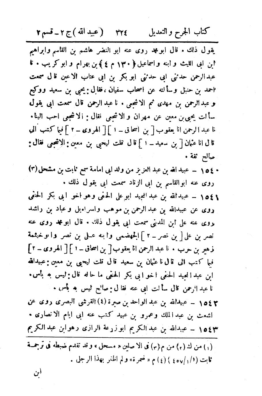 حَدَّثنا عَبد الرَّحمن، أَخبَرنا يعقوب بن إِسحاق الهروي، فيما كتب إليَّ، قال: حَدَّثنا عثمان بن سعيد، قال: قلتُ ليحيى بن مَعين: عُبَيد الله بن عَبد المجيد الحنفي أَخُو أَبي بكر الحنفي، ما حاله؟ قال: ليس به بأسٌ.