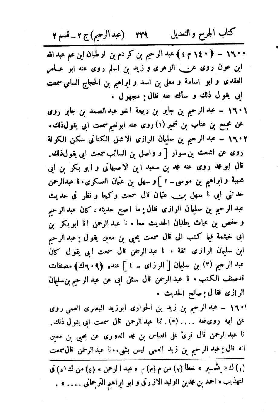 حَدَّثنا عَبد الرَّحمن، قال: سَمِعتُ أَبي يقول: كان عَبد الرحيم بن سليمان الرزاي عنده مصنفات قد صنف الكتب.