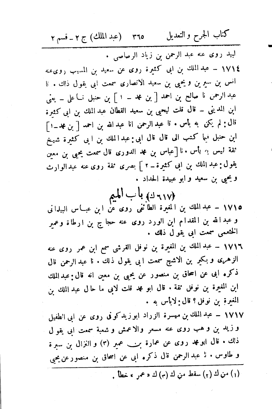 حَدَّثنا عَبد الرَّحمن، حَدَّثنا صالح بن أَحمد بن محمد بن حَنبل، حَدَّثنا علي، يَعني ابن المَديني، قال: قلتُ ليحيى بن سَعيد القطان: عَبد الملك بن أَبي كثيرة، قال: لم يكن به بأس.
