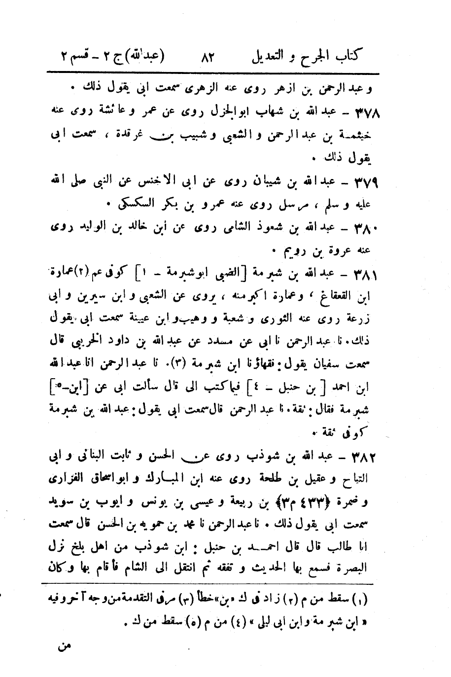 381- عَبد الله بن شبرمة الضَّبّي أَبو شبرمة، كُوفيٌّ، عم عمارة بن القعقاع، وعمارة أكبر منه.