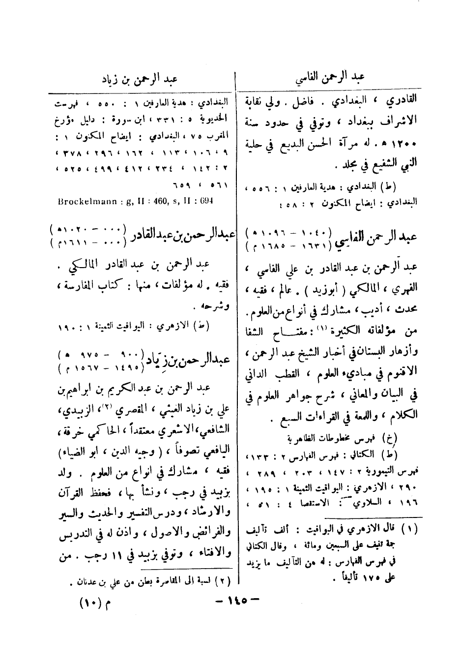 البغدادي: ايضاح المكنون 2: 458 عبد الرحمن الفاسي (1040 - 1096 هـ) (1631 - 1685 م) عبد الرحمن بن عبد القادر بن علي الفاسي، الفهري، المالكي (أبو زيد) .