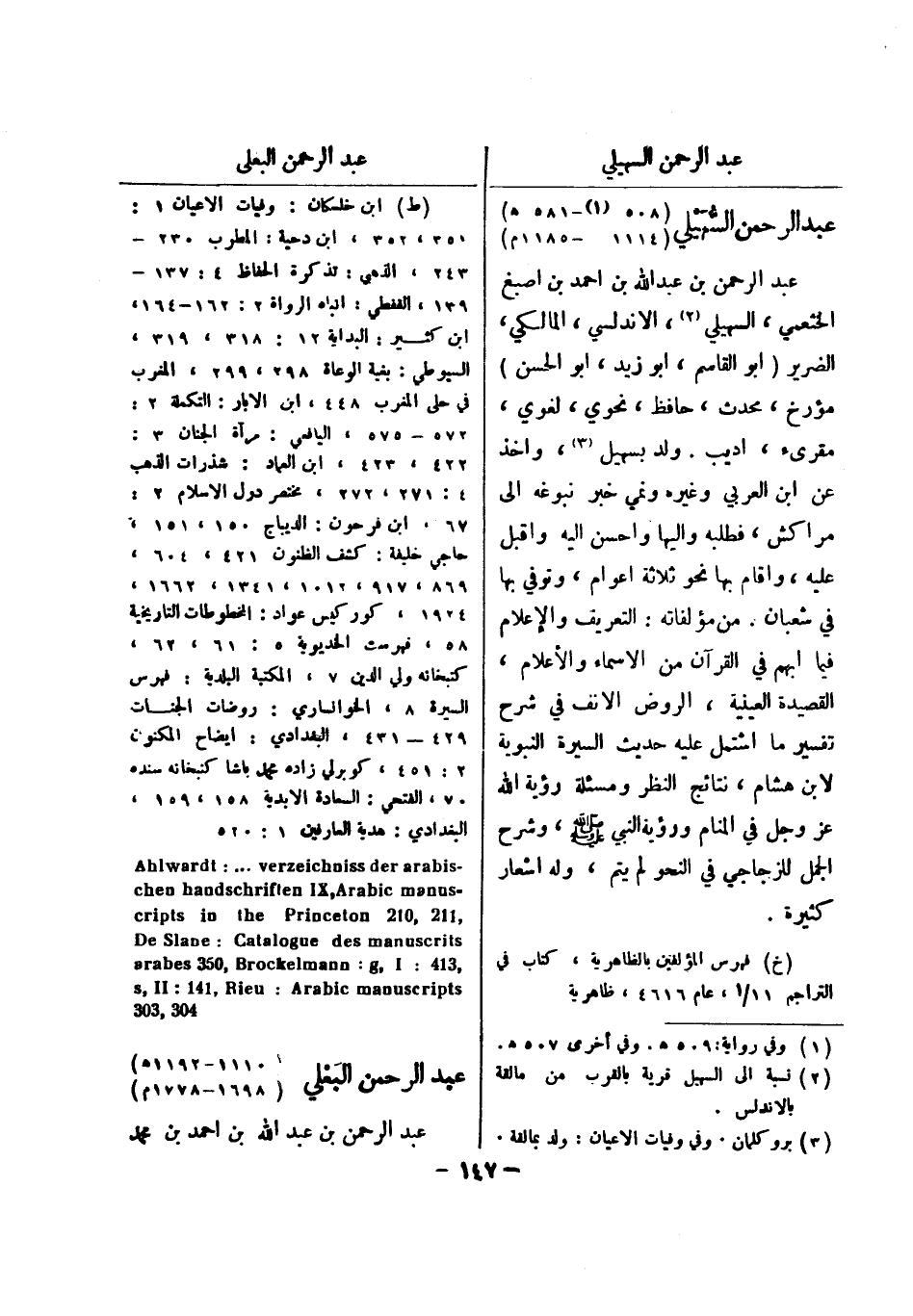 2: 451، كوبرلي زاده محمد باشا كتبخانه سنده 70، الفتحي: السعادة الابدية 158، 159، البغدادي: هدية العارفين 1: 520 304 , 303 s , II: 141 , Rieu: Arabic manuscripts , 413: arabes 053 , brockelmann: g , I De Slane: Catalogue des manuscrits , 211 , 210 cripts in the Princeton - chen handschrif ten IX , Arabic manus - Ahlwardt: ... verzeichniss dir arabis عبد الرحمن البعلي (1110 - 1192 هـ) (1698 - 1778 م) عبد الرحمن بن عبد الله بن احمد بن محمد