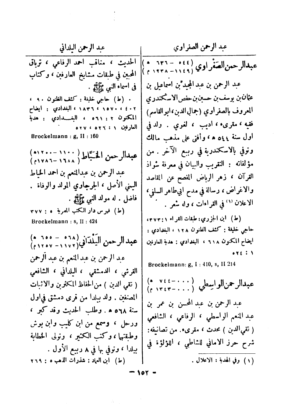 (ط) فهرس دار الكتب المصرية 5: 377 424: Brockelmann: s , II عبد الرحمن اليلداني (568 - 655 هـ) (1172 - 1257 م) عبد الرحمن بن عبد المنعم بن عبد الرحمن القرشي، الدمشقي، اليلداني، الشافعي (تقي الدين) من الحفاظ المكثرين والاثبات المصنفين.