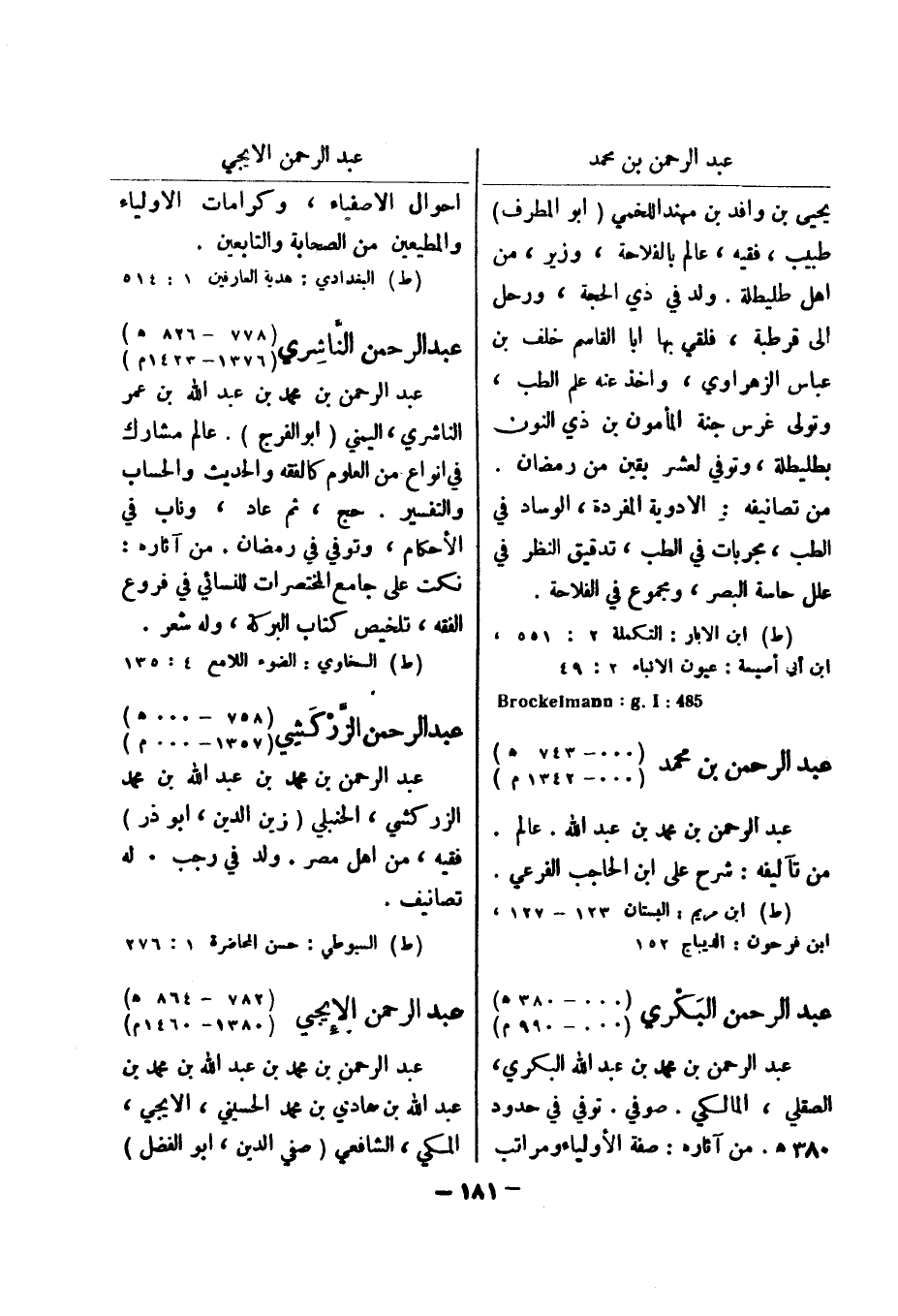 (ط) البغدادي: هدية العارفين 1: 514 عبد الرحمن الناشري (778 - 826 هـ) (1376 - 1423 م) عبد الرحمن بن محمد بن عبد الله بن عمر الناشري، اليمني (أبو الفرج) .