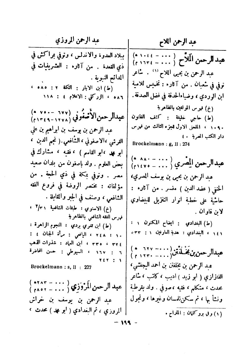 (خ) فهرس المولفين بالظاهرية (ط) حاجي خليفة: كشف الظنون 1090، الملحق الاول للجزء الثالث من فهرس دار الكتب المصرية 40 274: Brockelmann: g , II